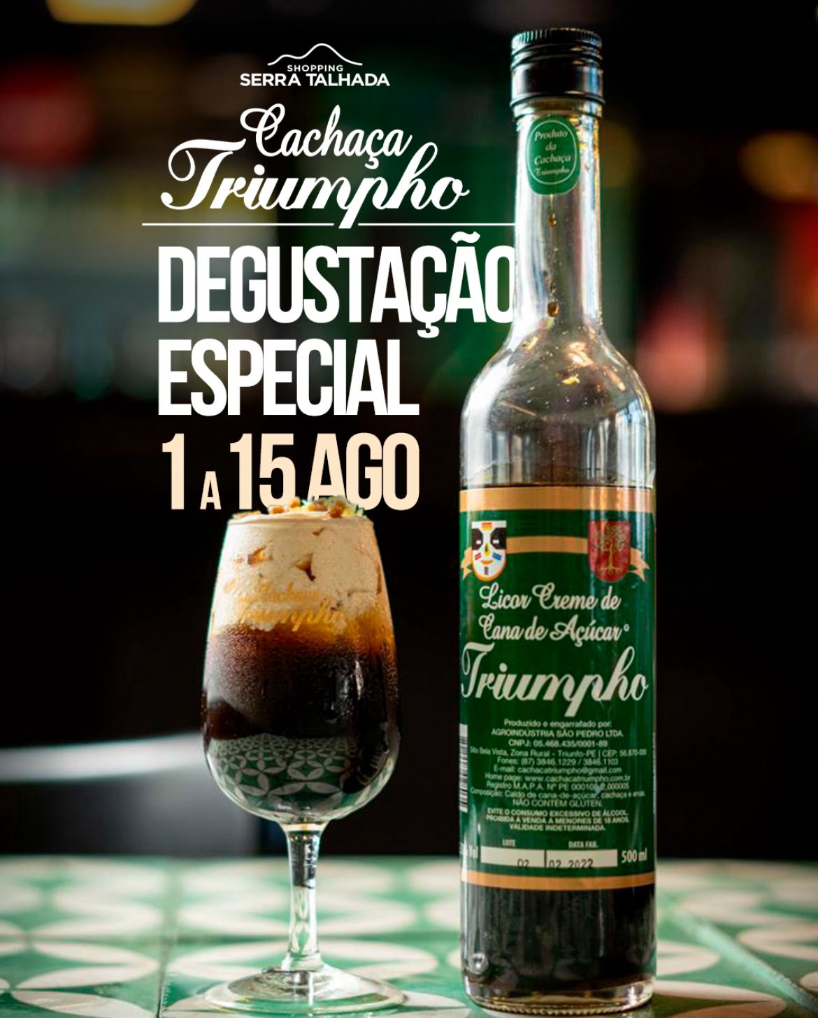 De 01 a 15 de agosto, vamos ter uma experiência imperdível para quem aprecia tradição e qualidade: uma degustação especial da Cachaça Triumpho. São diversos sabores selecionados que contam histórias em cada gole e prometem encantar seu paladar.